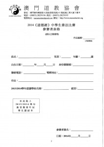 比賽章稱及報名表格,請下載:書法比賽簡章2014。