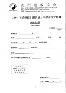 比賽章稱及報名表格,請下載:道德經徵文比賽章程2014。