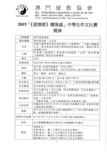 為讓中學生認識我國文化瑰寶《道德經》,弘揚中國傳統文化,配合特區政府推行德育教育的施政方針,本會自2011年舉辦《道德經》中學生書法比賽、校際歌唱比賽及「《道德經》讀後感」中學生作文比賽,深獲社會人士、學校師生、傳媒的讚許,對本地區學生的德育發展起着積極的推動作用。