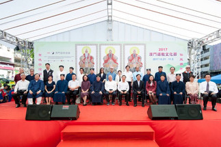 由澳門道教協會主辦的“2017澳門道教文化節”,於2017年10月21日 3:00PM 假議事亭前地開幕,主禮嘉賓:全國政協副主席何厚鏵先生、澳門特別行政區社會文化司司長譚俊榮博士、中央人民政府駐澳門特別行政區聯絡辦公室協調部傅鐵生部長、國家宗教事務局薛慧副司長、廣東省民族宗教事務委員會曾曉暉副主任、貴州省民族宗教事務委員會吳建民副主任、中國道教協會副會長、湖北省道教協會會長吳誠真道長、中國道教協會副會長、福建省道教協會會長謝榮增道長、中國道教協會副會長、廣東省道教協會會長賴保榮道長、澳門基金會何桂鈴委員、行政會發言人梁慶庭先生、澳門立法會梁安琪議員、香港道教聯合會主席、香港蓬瀛仙舘理事長梁德華道長、香港圓玄學院主席陳國超道長、文化局代表楊子健副局長、民政總署代表高佩珊部長、旅遊局代表陳露廳長、教育暨青年局代表黃健武廳長、馬來西亞道教總會會長陳和章道長、台灣省道教會會長張榮珍道長、新加坡道教總會甄福常副會長、安徽省道教協會會長詹達禮道長、貴州省道教協會會長張崇新道長、廣州市道教協會會長潘志賢道長、吉林省道教協會副會長張理玄道長、世界大伯公節聯誼會本固魯孫春富總會長、台北松山慈惠堂總策劃長李瑞彬先生、台灣蘆洲護天宮地母廟管理委員會李益義主委、韓國道教本山壽星宮李金鸞會長,福建省民宗廳郭華偉處長、澳門科技大學張志慶院長、山西綿山大羅宮主持靳玉鵬道長、泰國道教華光寶殿葉倡吉執行長及澳門各廟宇代表等。馬來西亞的世界大伯公節籌委會亦組團來澳出席活動,陣容鼎盛。