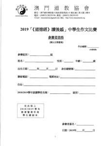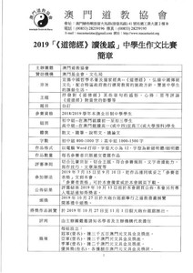 2019「《道德經》讀後感」中學生作文比賽