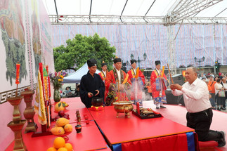 祈福典禮:江西葛仙山法務團演法,全國政協副主席何厚鏵先生及譚俊榮司長,為澳門社會安定繁榮、市民身心康泰上香,上供祈福,場面肅穆莊嚴。
