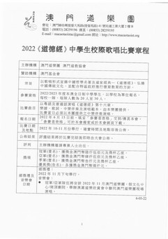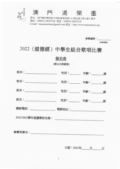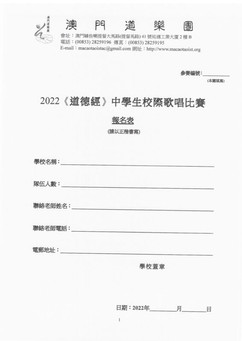 2022《道德經》中學生校際/組合歌唱比賽簡章及報名表如下: