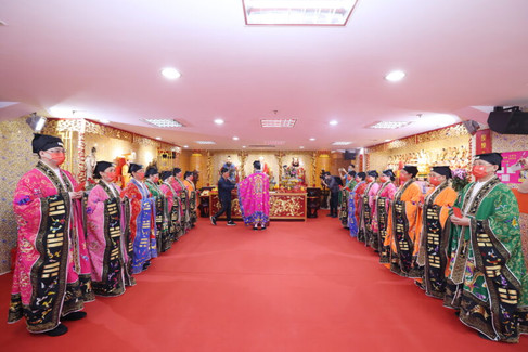 開幕式昨日下午三時舉行,中聯辦協調部長傅鐵生、中央統戰部十一局巡視員薛慧,張高澄,廣東省民族宗教事務委員會副主任曾曉暉、澳區全國人大代表劉藝良、澳門基金會行政委員何桂鈴、議員梁安琪、中聯辦協調部副部長吳輝、文化局代表盧可茵、教育及青年發展局代表黃健武、廣東省道教協會會長潘志賢、澳廣視執委會主席羅崇雯、廟宇節慶文化促進會創會會長梁慶庭,以及澳門道協會長吳炳鋕及副會長葉達、賴宏等出席主禮。江門市委統戰部副部長譚健文、新會區委統戰部副部長梁偉光等亦有參加。