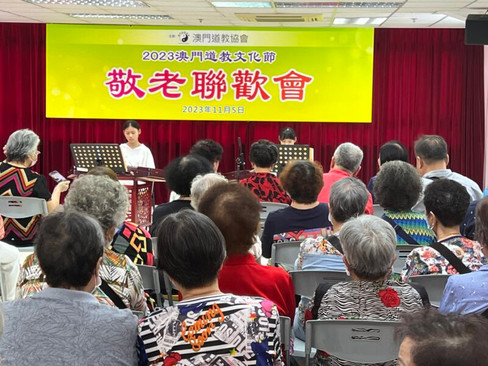 由澳門道教協會主辦的「2023澳門道教文化節之敬老聯歡會」11月4日日起一連兩日在道教協會會址舉行。活動共分兩場進行,包括4日下午的道教文化專題講座及中學生《道德經》書法文比賽頒獎禮,及5日有澳門少年道樂團團員音樂表演,包含古箏、笛子、揚琴及中阮等不同樂器表演。每場約有60名多個友好團體及街區團體長者參與。主辦方冀借活動弘揚道教尊老敬老的傳統文化,同時展示傳播道教科儀音樂及為青少年提供展示的平台。