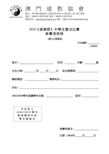 為讓中學生認識我國文化瑰寶《道德經》,弘揚中國傳統文化,配合特區政府推行德育教育的施政方針,本會於2011年至2023年成功舉辦了十多屆 《道德經》中學生書法比賽,深獲社會人士、學校師生、傳媒的讚許,對本地區學生的德育發展起着積極的推動作用,2024年本會繼續舉行《道德經》中學生書法比賽(章程見附件)。參加者於2024年8月15日至9月9日期間將參賽者表格(見附件)及作品遞交本會。