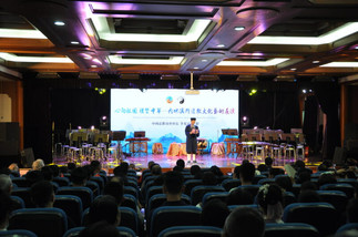 為加強內地與澳門之間道教文化的深入交流,由中國道教協會、澳門道教協會主辦,北京白雲觀承辦,北京火德真君廟、北京辰園聯合協辦的“心向祖國 禮贊中華”內地澳門道教文化藝術交流,7月23日下午,假中國道教協會禮堂舉行。中國道教協會會長李光富、澳門道教協會會長吳炳鋕、中聯辦副部長吳輝、中道協秘書長李寒穎、澳道協副會長賴宏、北京市西城區委統戰部副部長蔣曉暉、北京白雲觀監院李信軍、北京火德真君廟住持張凱、以色列著名道教學者李福,法國著名道教學者范華等300多人出席,全場滿座。