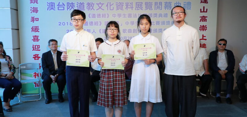 為弘揚我國文化瑰寶《道德經》,配合特區政府推行德育教育的施政方針,澳門道教協會今年續辦以中學生為對象的關於《道德經》多項比賽。當天亦舉行2018《道德經》中學生書法比賽頒獎典禮、2018《道德經》中學生讀後感作文比賽頒獎典禮及2018《道德經》青年人歌曲創作頒獎典禮。