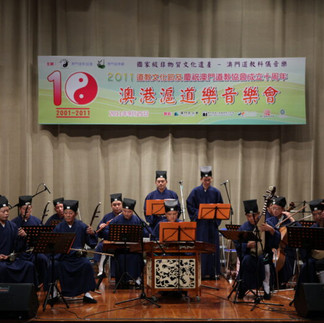 “澳港滬道樂欣賞會”9月25日七時半假理工學院禮堂舉行,由澳門道樂團、香港道樂團、上海浦東道教協會法務團擔演。澳門道樂團在音樂會上演奏樂團的精華節目,“玉皇讚”、“五供養”、“道德經”、“文武點絳脣”,讓聽衆領略澳門道樂中全真地方豐采及兼容正一派的音樂曲韻;更有充滿喜慶的吹打樂,盡現道樂南派鑼鼓、南派吹打樂的丰采。 上海浦東道教樂團演奏了根據浦東道教音樂元素和原曲編配的民樂合奏曲“齋天”、“三比歌”和“漁歌”。香港道樂團是蓬瀛仙館主辦的道教樂團,會上演奏了道教經典樂曲“仙家樂”、“五聲彿”和“三清宮”等。 此外,道德經中學生歌唱比賽冠冠軍隊伍–中葡職業技術學校詠唱王忠人副教授新撰篇道德經第一章,並由澳門道樂團伴奏。