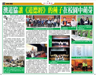 為讓中學生認識我國文化瑰寶《道德經》,弘揚中國傳統文化,配合特區政府推行德育教育的施政方針,自2011年澳門道教協會及澳門道樂團,在特區政府的支持下,透過《道德經》以中學生為對象,開展道化教育的工作,以不同形式,將《道德經》的思想及和諧之道融入校園,持續舉辦《道德經》中學生書法比賽、「《道德經》讀後感」中學生徵文比賽及《道德經》中學生歌唱比賽。以上比賽一直深獲社會人士和傳媒的認同、教育界大力支持,各學校及同學們踴躍參賽,對本地區學生的德育發展起着積極的推動作用。